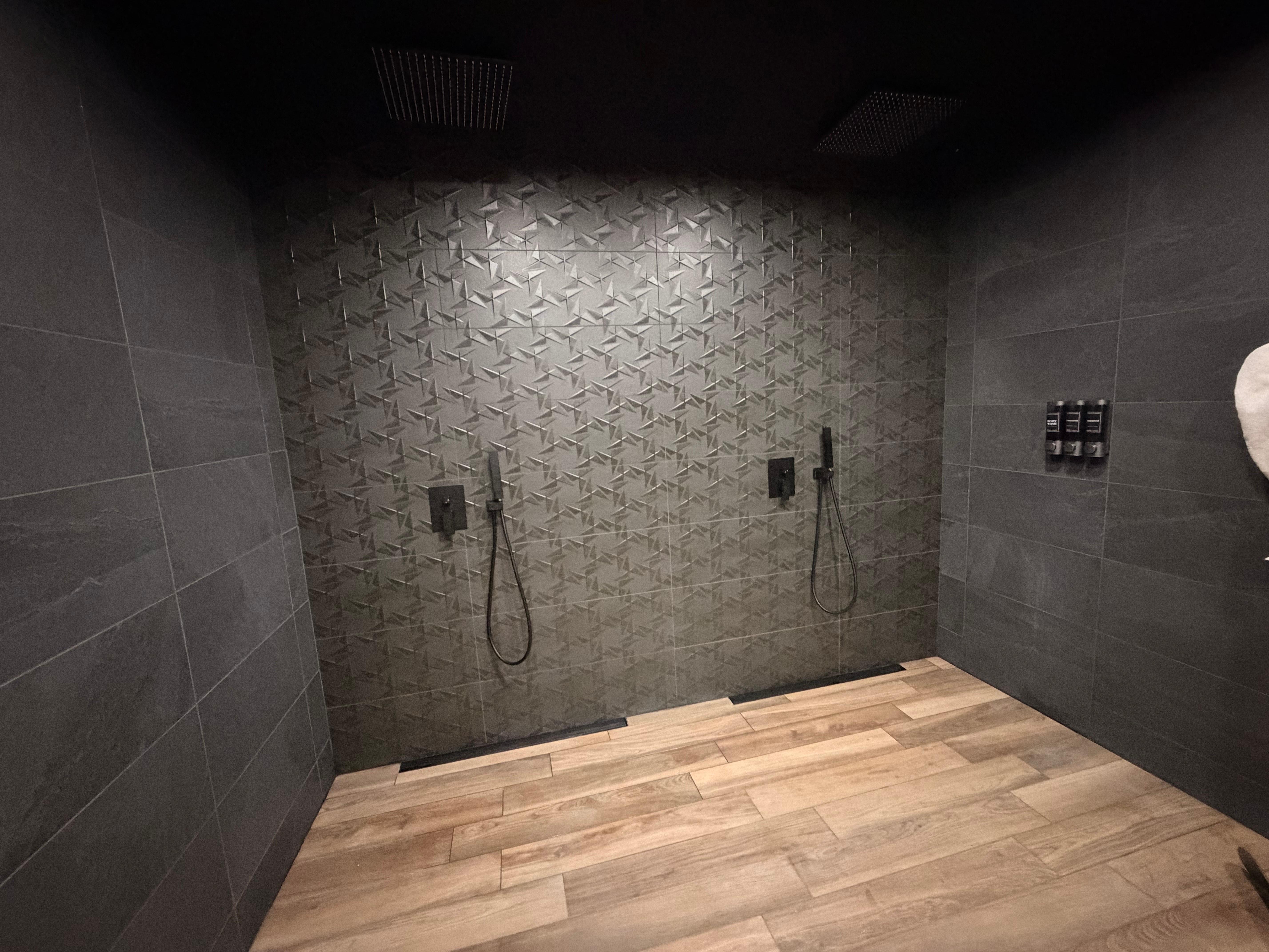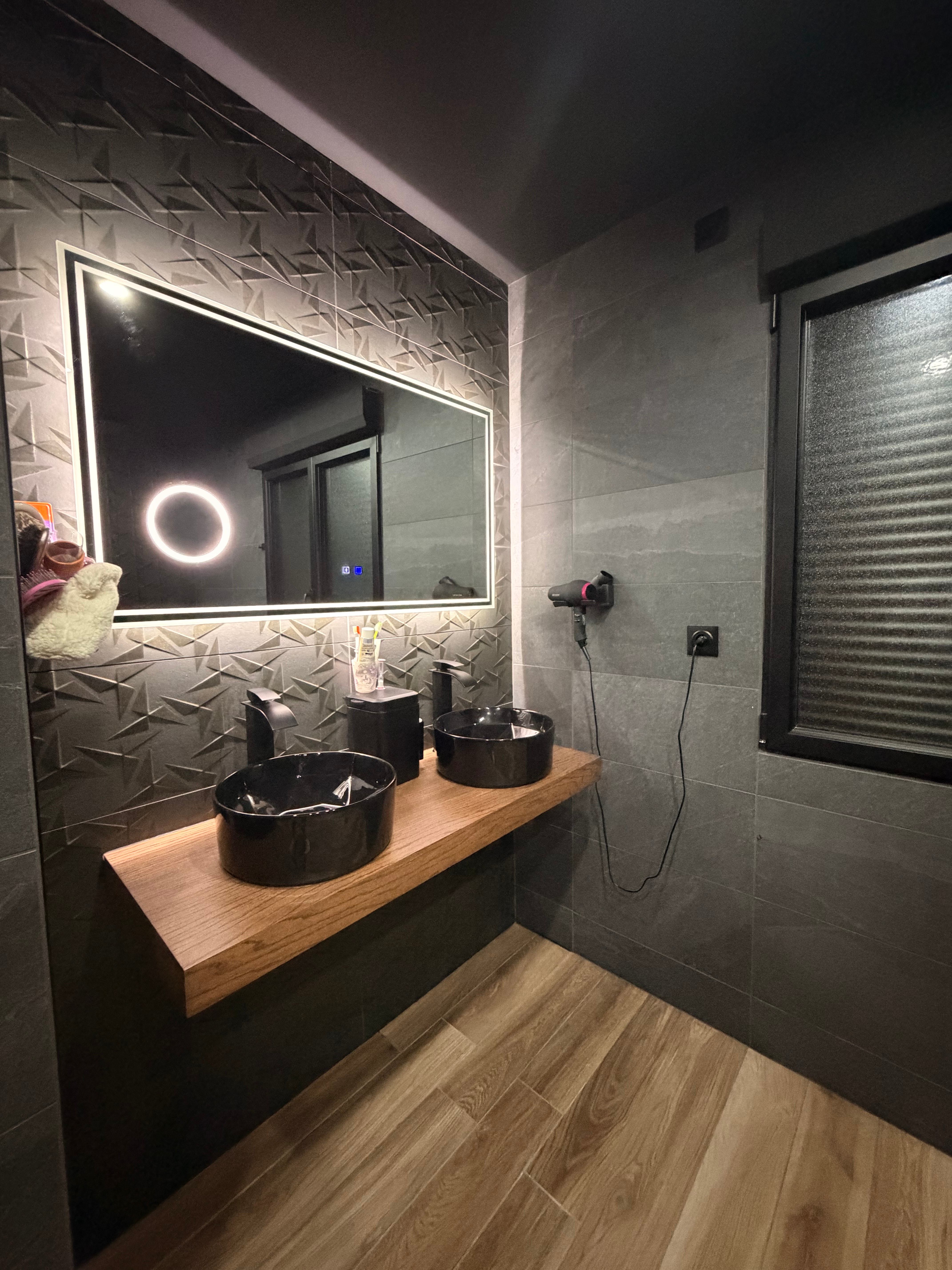 - ★ Salle de Bain de Standing : Double vasque design sur plan en bois, douche à l'italienne XL avec ciel de pluie et finitions texturées haut de gamme.